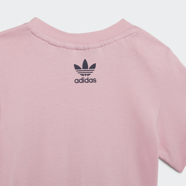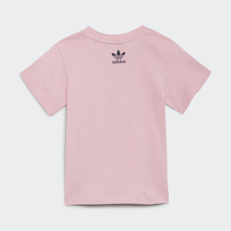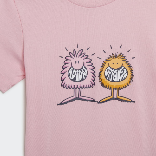 Deo posebne kolekcije sa ilustratorom Kevin Lyons-om, poznatom po razigranim grafičkim motivima čudovišta koji simbolizuju slobodu izražavanja i jedinstvo. Ovaj komplet za bebe uključuje majicu kratkih rukava i šorceve u veselom roze tonu, namenjen je uniseks nošenju bez ograničenja na osnovu pola. Izrađen je od 100% pamuka iz održivih izvora, podržavajući bolje metode uzgoja pamuka.