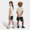 Train Essentials Camo Print Set je komplet za decu koji kombinuje udobnost, funkcionalnost i stil. Sastoji se od kratkih rukava sa regular fit krojem i uskih donjih šortseva. Print u kamuflažnoj temi i 3-Stripes detalji sa malim adidas logom daju moderan sportski izgled.