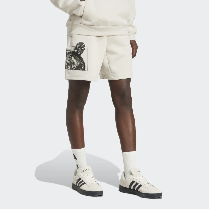 Adidas Star Wars™ The Mandalorian™ Shorts su muški šorts koji kombinuje udobnost i prepoznatljiv stil inspirisan kultnom franšizom. Lagani pleteni materijal pruža prijatan osećaj tokom nošenja, dok elastičan pojas omogućava lako podešavanje i stabilno pristajanje. Grafika inspirisana likovima iz serije daje autentičan izgled, a upotreba recikliranih i obnovljivih materijala čini ovaj model odgovornijim izborom za svakodnevne aktivnosti i opuštene treninge.