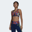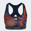 Ovaj upečatljivi adidas x FARM Rio sportski grudnjak kombinuje jake grafike i sigurnu podršku za srednje intenzivne treninge. Prilagođen je telu, ali ne steže previše, pružajući udobnost tokom aktivnosti poput spinninga i vožnje bicikla. Mrežasti deo na leđima omogućava dobru cirkulaciju vazduha i brže isparavanje znoja, pomažući da ostanete suvi. Proizvod je napravljen od niza recikliranih materijala i sadrži najmanje 60% recikliranog sadržaja, čime adidas doprinosi smanjenju plastičnog otpada.