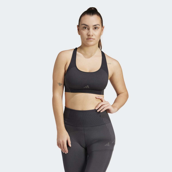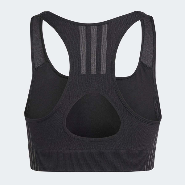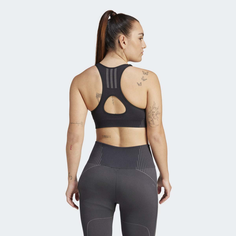 Opis: Aeroknit Light Support Bra je bezšavni sportski grudnjak koji pruža laganu podršku i omogućava potpunu slobodu kretanja tokom treninga. Ovaj grudnjak je izrađen od recikliranih materijala, sa AEROREADY tehnologijom koja održava vašu kožu suvom, čak i tokom najintenzivnijih treninga. Njegova bezšavna konstrukcija garantuje udobnost, a uklonjivi jastučići sa grip tačkama sprečavaju pomeranje, omogućavajući sigurne pokrete. Dizajniran je da bude udoban i za najzahtevnije treninge, od HIIT-a do spinninga i boksa.