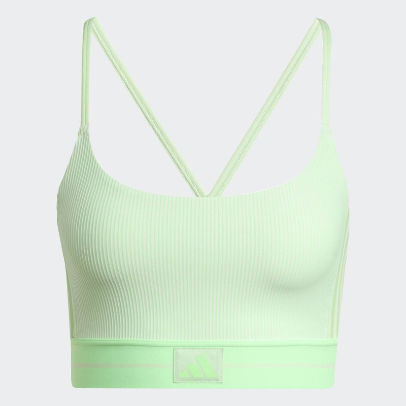 Hyperglam Rib Bralette kombinuje funkcionalnost i stil, idealan je za treninge sa laganom podrškom i svakodnevno nošenje. Napravljen od recikliranih materijala i sa CLIMACOOL tehnologijom, omogućava brzo odvođenje znoja i održava osećaj svežine. Rebrasti paneli, džakard elastičan pojas i tonalne tri pruge sa strane dodaju moderan izgled, dok strappy dizajn pruža udobnost pri niskointenzivnim aktivnostima.