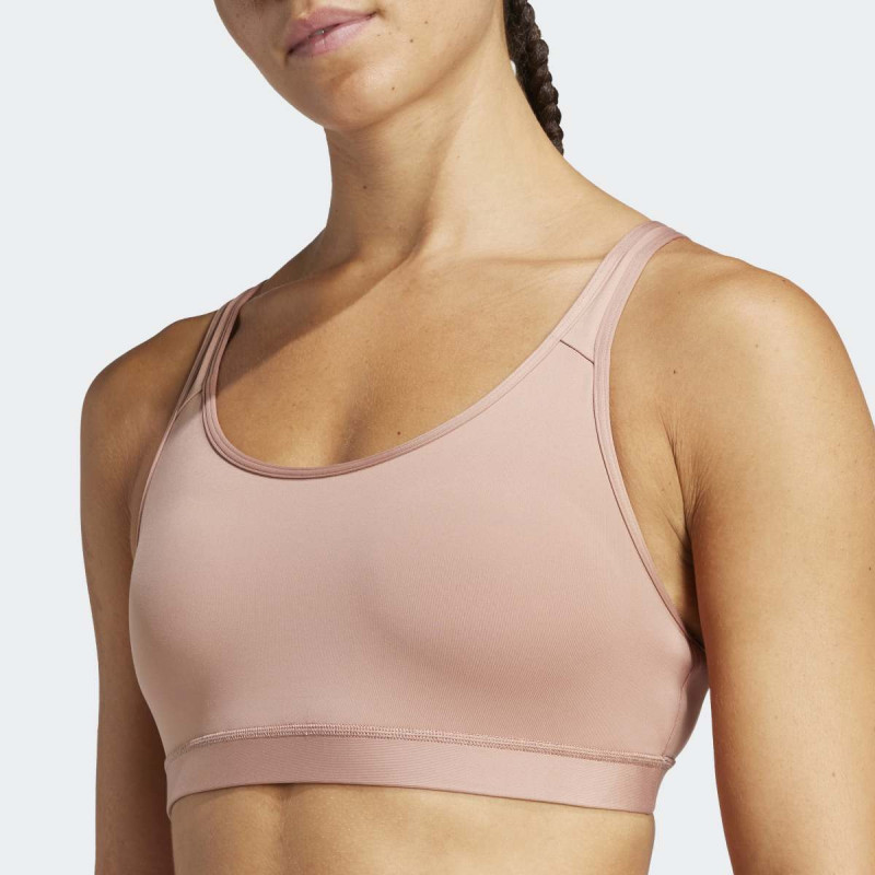 adidas All Me Essentials Bra je mekan i prozračan sportski bralet dizajniran za studio treninge poput joge, pilatesa i barre-a. Prijatan materijal uz telo i AEROREADY tehnologija pomažu da ostaneš suva i fokusirana tokom pokreta, dok srednja podrška daje sigurnost bez osećaja stezanja. Uklonjivi jastučići omogućavaju prilagođenu pokrivenost, a minimalistički dizajn čini ga odličnim i samostalno i ispod majica otvorenih leđa.
