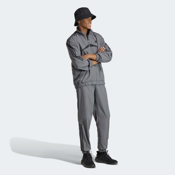 Adidas Sportswear Woven Chevron Tracksuit za muškarce je izdržljiv i funkcionalan komplet, savršen za sve vrste aktivnosti, od putovanja do opuštanja kod kuće. Jakna sa chevron uzorkom i 3 pruge sa strane stvara modernu sportsku siluetu. Materijal sa brzim sušenjem i moći da odvodi vlagu pruža udobnost tokom svih aktivnosti. Pantalone sa tapered fit krojem i elastičnim strukom s drawcordom osiguravaju udoban i moderan izgled. Ovaj proizvod je napravljen od 100% recikliranih materijala, što čini ovaj tracksuit ekološki prihvatljivim i održivim izborom.