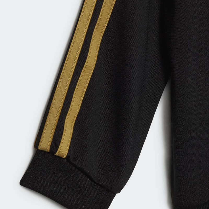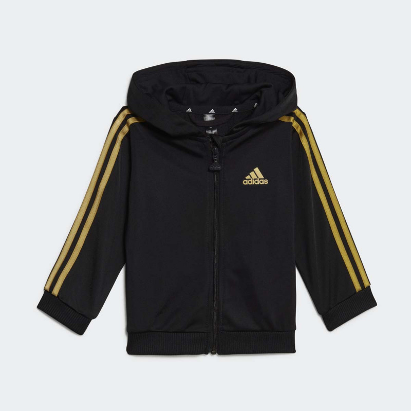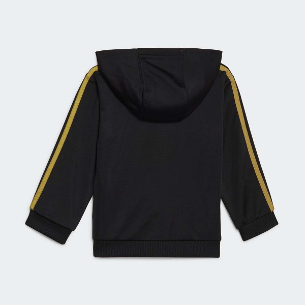 Ovaj adidas tracksuit set za bebe je idealan za aktivne mališane. Napravljen od 100% recikliranog poliestera, set pruža udobnost i fleksibilnost tokom svih aktivnosti. Gornji deo ima pun zip sa kapuljačom, a pantalone su opremljene elastičnim pojasom i rebrastim manžetnama, kako bi se održao komfor. Dizajn s ikoničnim 3-stripes prugama i malim adidas logom čini ga stilskim komadom za svaki dan. Ovo je ekološki prihvatljiv proizvod koji pomaže smanjenju plastike.