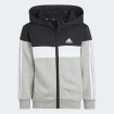 Ova adidas trenerka, inspirisana Tiberio dizajnom, kombinacija je stila i udobnosti. Napravljen od 70% pamuka i 30% recikliranog poliestera ima sve što je potrebno da mališani budu topli tokom hladnijih meseci. Sa ikoničnim prugama na rukavima i nogavicama, punim zipom i kapuljačom za dodatnu zaštitu od hladnoće, ova trenerka je savršen izbor za aktivnosti tokom dana. Dodatna udobnost dolazi od elastičnog pojasa sa šniranjem na pantalonama. Proizvod je deo adidasove inicijative za smanjenje plastičnog otpada i korišćenje recikliranih materijala.