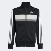 Tiberio trenerka za decu pruža savršenu kombinaciju udobnosti i stila. Gornji i donji deo su od 100% recikliranog poliestera sa CLIMACOOL tehnologijom koja odvoji znoj i brzo suši, održavajući kožu svežom i suvom. Jakna ima stand-up kragnu, full zip i kangaroo džep, dok pantalone imaju elastični struk sa podesivim pertlama i bočne džepove. Kontrastni blokovi boja i klasične tri pruge dodaju moderan i dinamičan izgled. Idealna je za školu, sport ili slobodne aktivnosti.