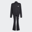 Boja: Crna / srebrni metalik (Black/SilvMt)Junior Girls Glam Tracksuit kombinuje sport i stil za devojčice. Gornji deo od flisa je udoban i mekan, sa stojećim kragnom, bočnim džepovima i metalik logoom na leđima, dok donji deo ima uske, blago proširene nogavice sa metalik 3-stripes detaljima i logoom na gornjem delu leve nogavice. Trenerka je dizajnirana za udobnost i moderan izgled, sa gornjim delom u opuštenom kroju i donjim delom u užem kroju.