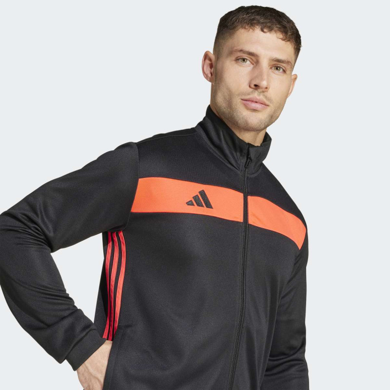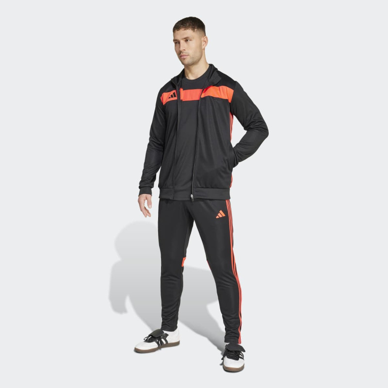 Adidas Tiro 25 Essentials Track Suit je muški komplet trenerke dizajniran za trening i svakodnevnu upotrebu. Slim-fit jakna i regular-fit pantalone omogućavaju udobnost i slobodu pokreta, dok AEROREADY tehnologija pomaže u kontroli znoja i održavanju suvoće tokom aktivnosti. Ikonične 3-stripe trakice i kontrastni detalji daju sportski, ali ujedno i lifestyle izgled, idealan za teren ili ulicu. Napravljen delimično od recikliranih materijala, kombinuje funkcionalnost, stil i održivost.