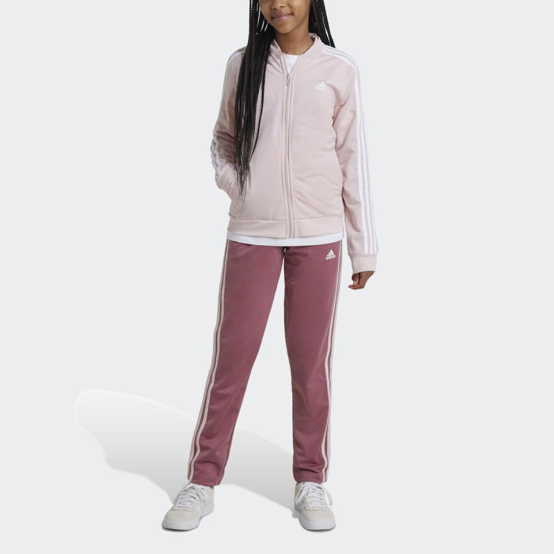 Junior Girls Essentials 3 Stripes Tracksuit kombinuje stil i udobnost za svakodnevne aktivnosti i igru. Mekan trikot materijal omogućava slobodu pokreta, dok ribani detalji i elastičan pojas sa drawcord-om obezbeđuju siguran fit. Savršen je za sport i casual dnevne kombinacije.