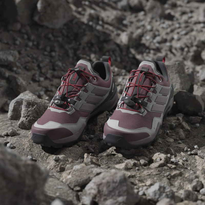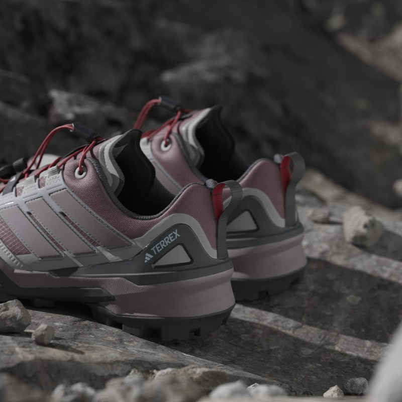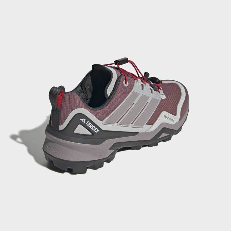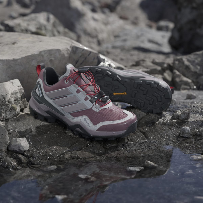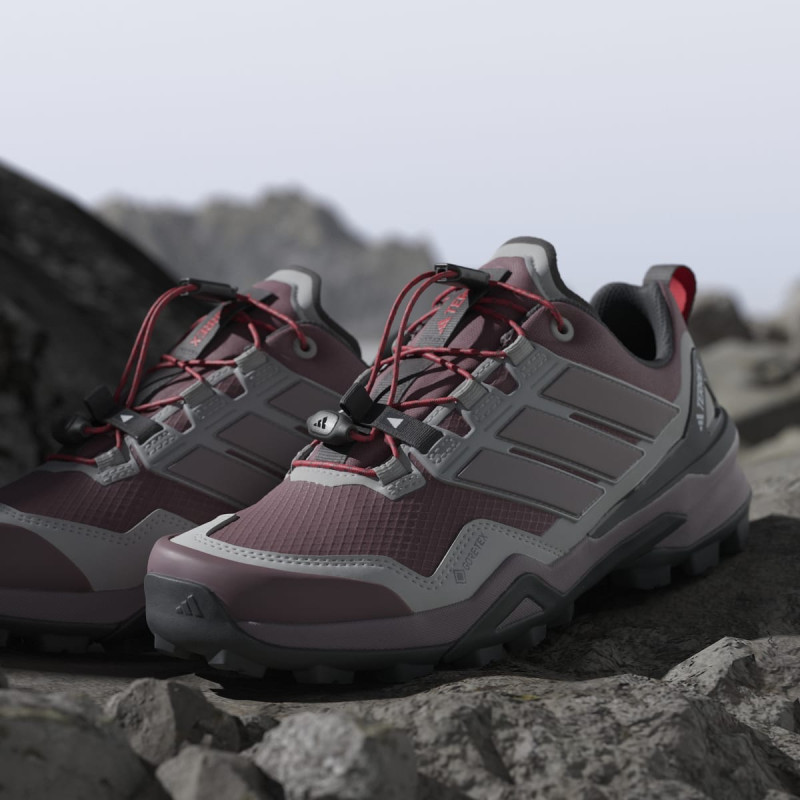 Terrex Skychaser GTX W su patike dizajnirane za ženske avanturistkinje koje se kreću po tehničkim stazama i brdima. Ripstop gornji deo sa ojačanim prednjim delom pruža zaštitu i izdržljivost na blatnjavim i stjenovitim terenima, dok GORE-TEX EPE membrana drži noge suvim i omogućava disanje. Continental™ gumeni đon garantuje sigurno prijanjanje, a TPU stabilizator na peti i srednji ojačani deo sa Speed-Lace sistemom pružaju precizno prijanjanje i kontrolu koraka. Lightstrike srednji đon i OrthoLite® ulošci nude udobnost i responzivnost pri svakom koraku, dok nova konstrukcija petnog dela omogućava lako obuvanje i maksimalnu udobnost. Patike su delimično izrađene od recikliranih materijala.